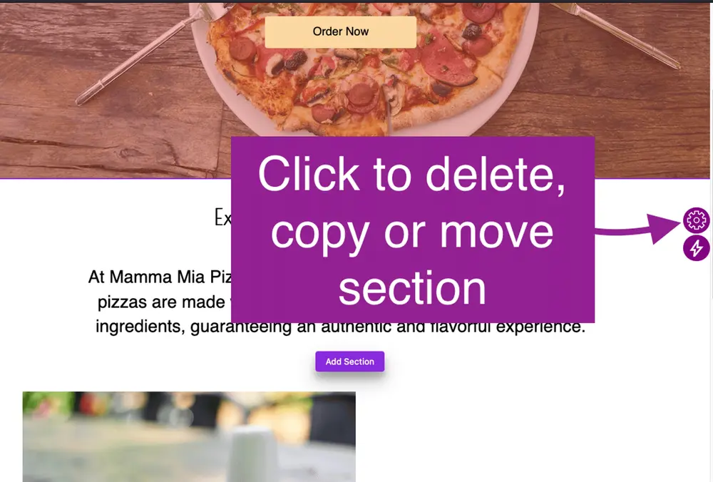 Within the same menu where you found the 'Delete' option, you'll also discover the ability to 'Copy' or 'Move' a section, either up or down the page. This versatile feature empowers you to tailor your page layout to your precise preferences, ensuring it perfectly aligns with your needs.