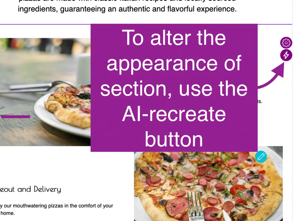 To alter the appearance and content of a newly added section, make use of the AI-recreate button. This feature allows you to experiment with different section styles until you're satisfied with the look. Use it to get the desired section appearance before diving into text and image editing, you can achieve the perfect visual balance for your content.